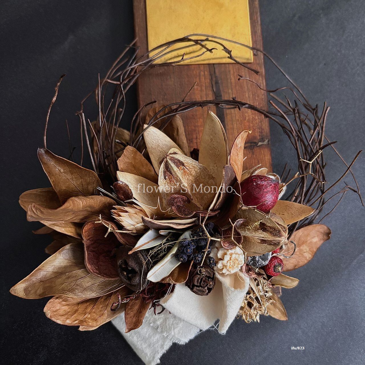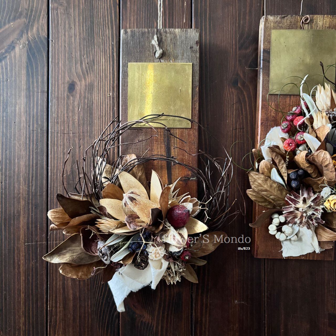 ■ 主材料 古材/真鍮/木の実/バラ/ネイティブフラワー 他