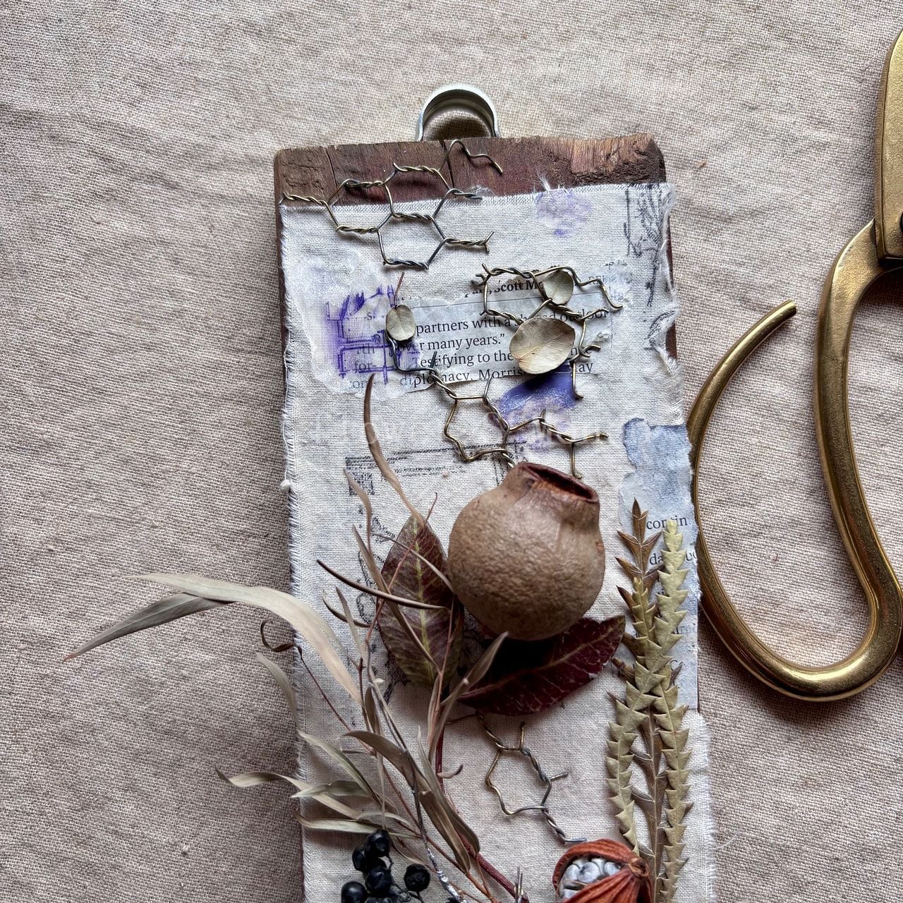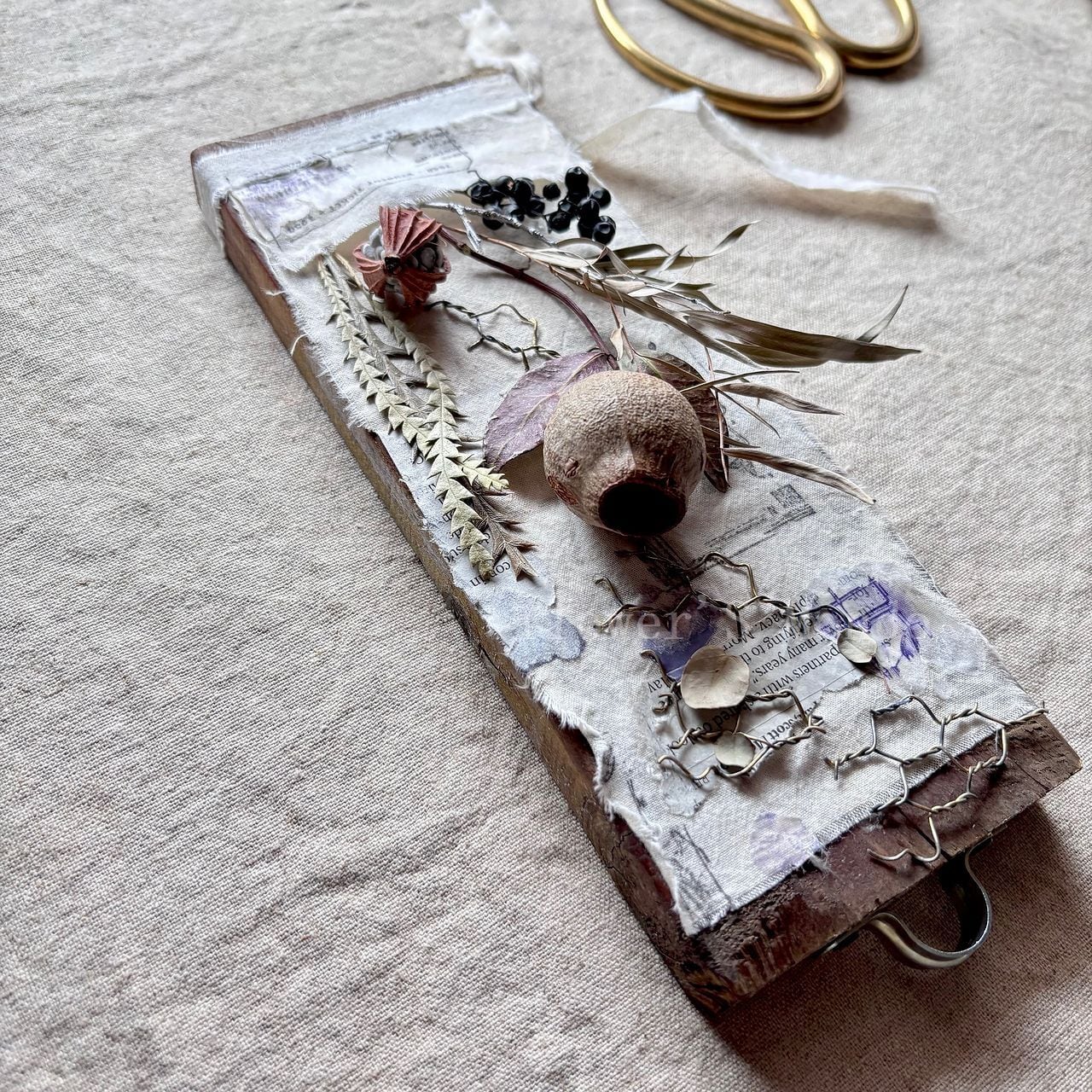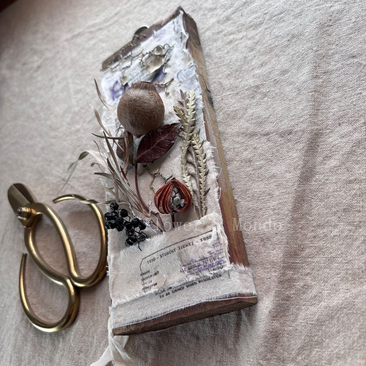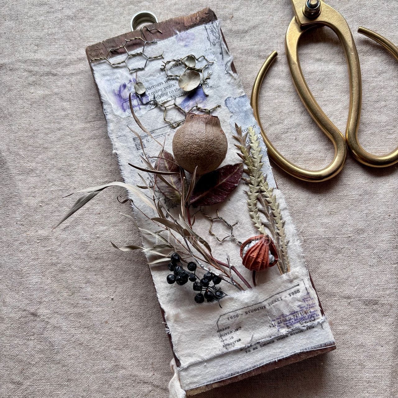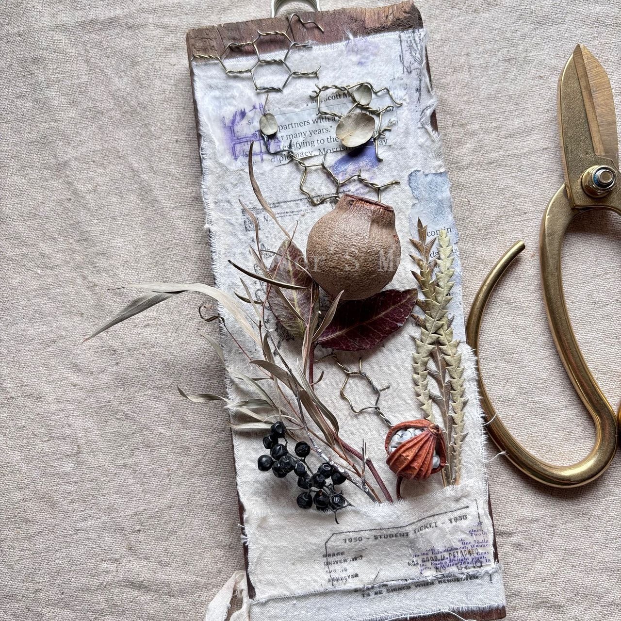 ■ 主材料 ドライフラワー/木の実/リネン/ワイヤーネット