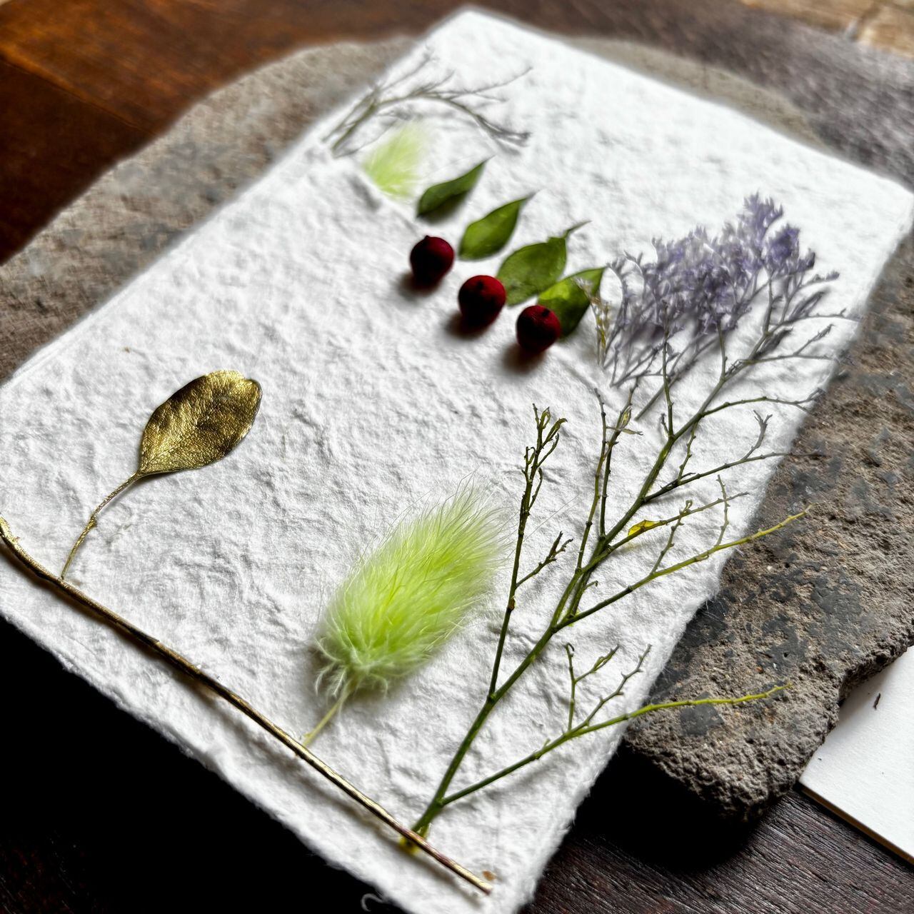 ※ドライフラワーですのでこのまま切手を貼ってお使いになる事は出来ません。直接お渡し頂くか、贈り物に添えて頂くことをお勧めいたします。